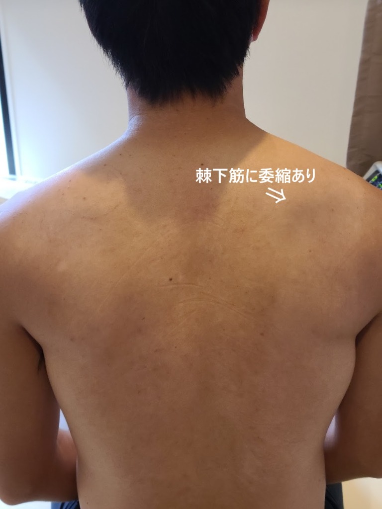 ジャクソン、スパーリングテストは陰性でしたが、背部に回り視診すると「あれ?なにか違和感が」