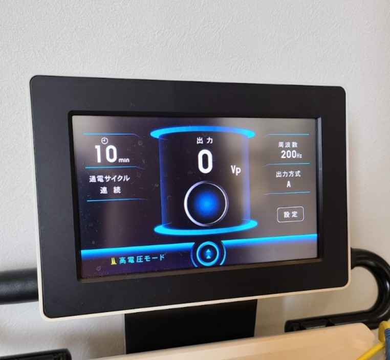 ハイボルテージとは高電圧で深部に刺激を与え、鎮痛効果が高く、痛みに対して即効性があります。急性腰痛症(ぎっくり腰)やテニス肘、四十肩(五十肩)、肩こり、野球肩などに対して効果が高く、また低周波などと違い、皮膚抵抗が抑えられるため電気刺激が苦手な方にも安心して治療を受けていただけます。