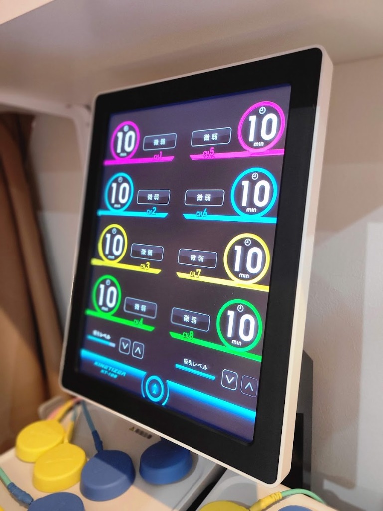 アブソリュートマクセサー30分寝ているだけで腹筋約30,000回!服の上からプローブをあてるので、服をめくる面倒な手間など一切ありません。また出産後の女性の悩みでもある尿漏れ対策に、座ったまま骨盤底筋を鍛えることもできます。このような方に・ウエストにくびれを作って引き締めたい方・二の腕とたるみを引き締めて細くしたい方・ふくらはぎを引き締めたい方・腹部の皮下脂肪を減少させて美しい腹筋を作りたい方・ヒップアップをしたいが、トレーニングで他の部位に筋肉をつけたくない方・姿勢を良くするために体幹に筋肉をつけたい方・定期的なトレーニングで鍛えながら、さらに筋肉増大させたいアスリートの方・運動をしたいが自発的に運動ができない方・従来の脂肪だけを減少させる痩身マシンや、注射、食事制限などで十分な効果を得られなかった方・筋力をつけることで運動でのパフォーマンスを向上させたい方・産後の腹部の引き締めや尿漏れを防止したい方また、筋肉が強化することで基礎代謝を上げて太りにくい体作りを目指すことができます。 当整骨院でのアブソリュート実績https://ariyoshiseikotsuin.com/page06.aspx